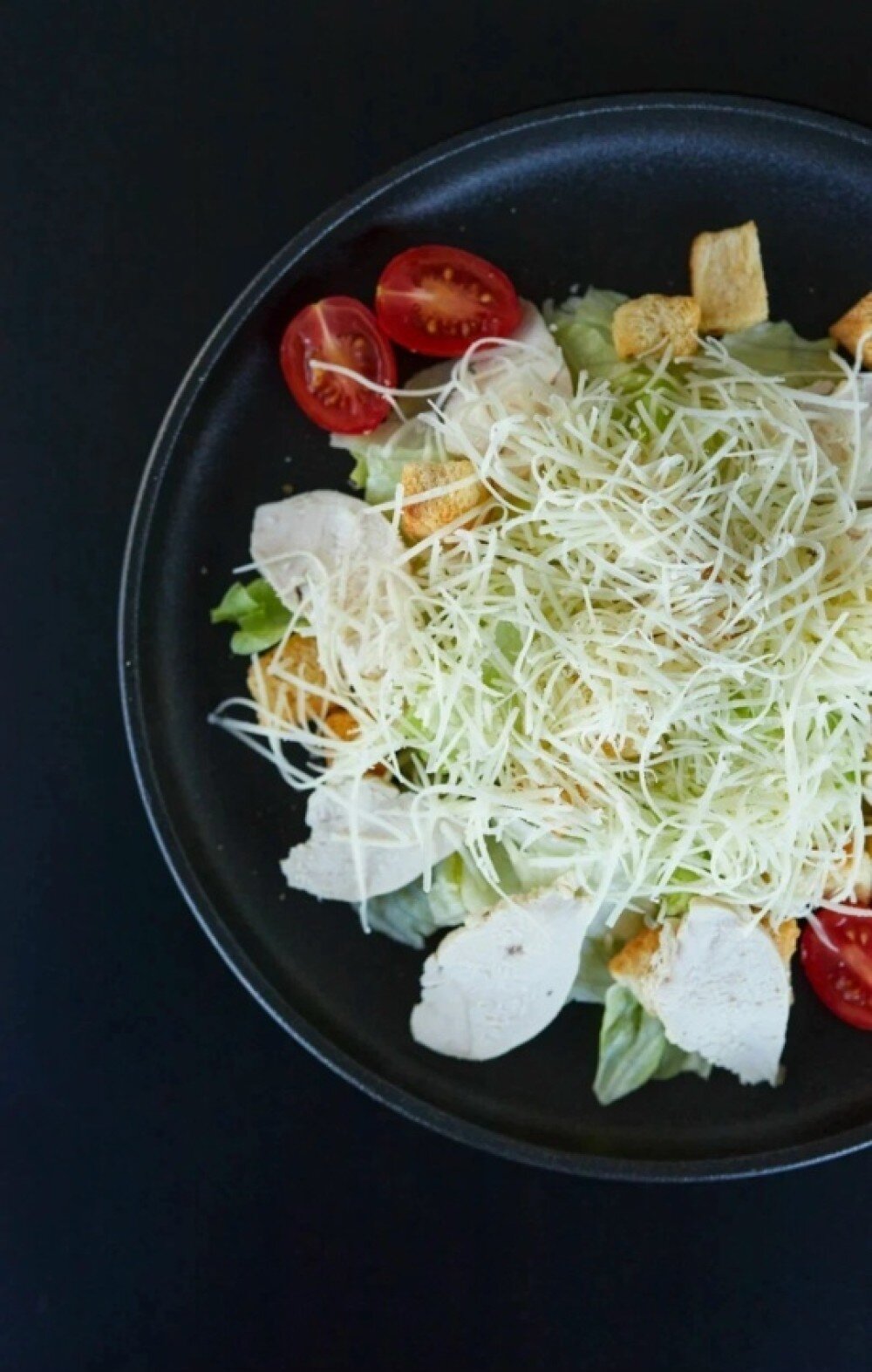 Состав: курица, салат айсберг, черри, соус цезарь, гренки, сыр пармезан