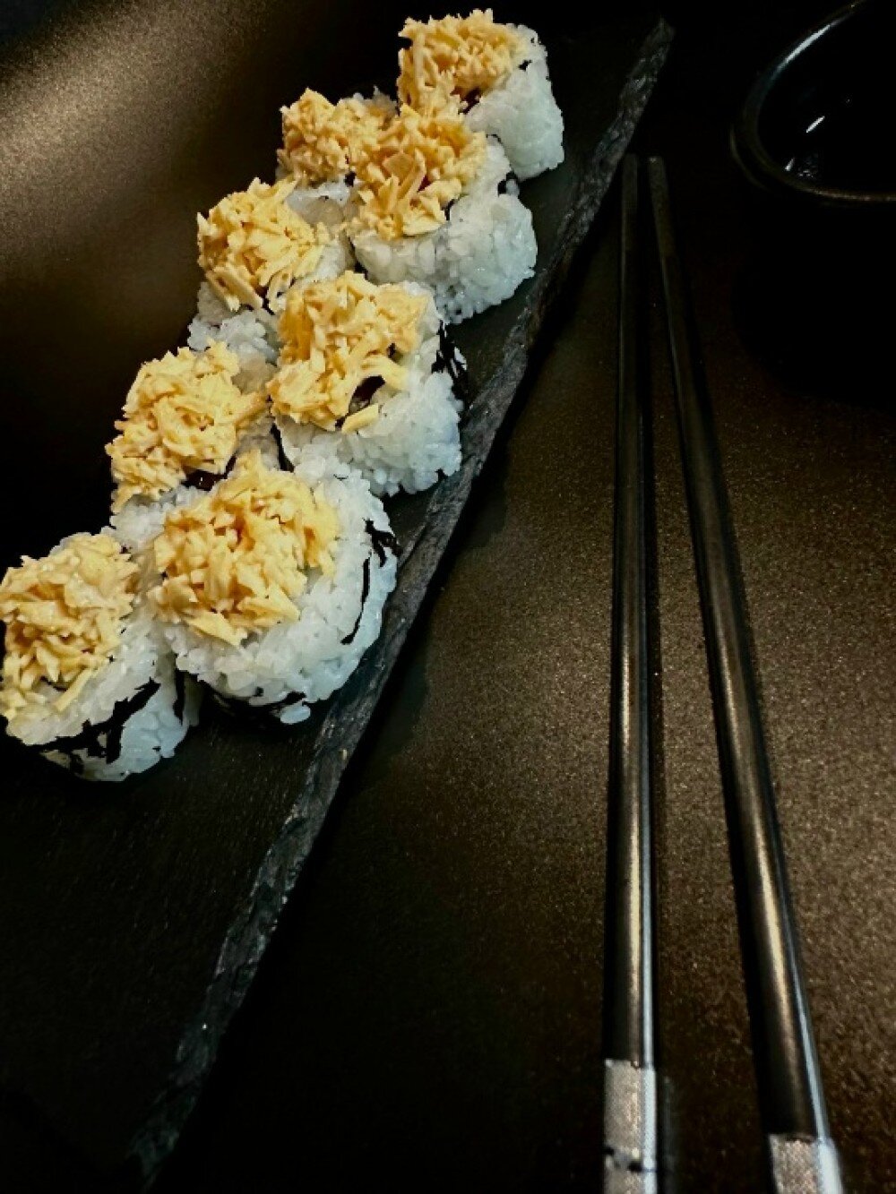 Сыр, авокадо, лосось, имитация краба, спайс, рис, нори