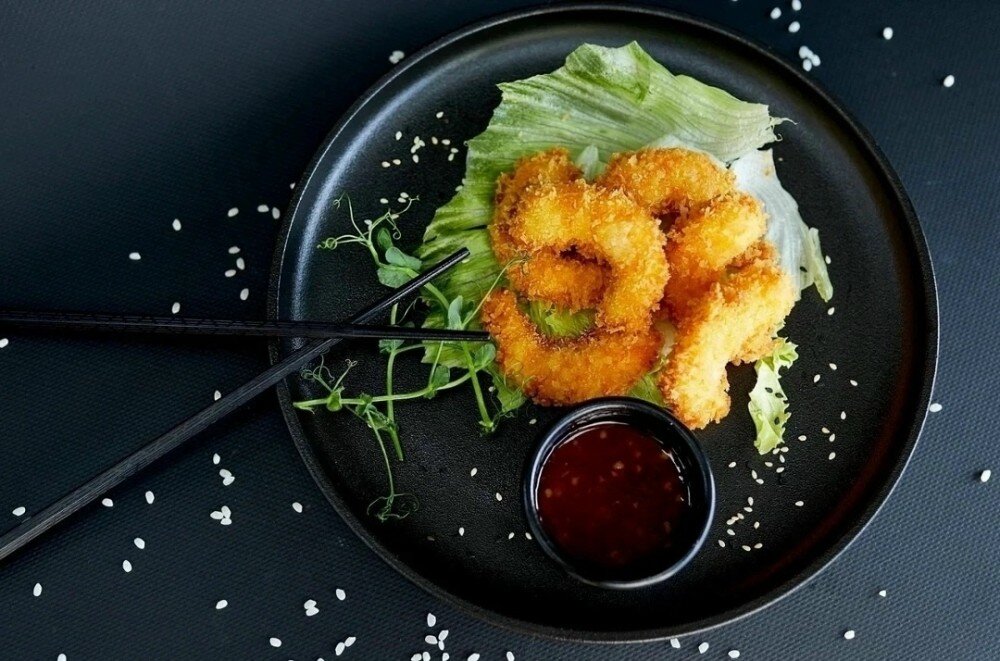 Креветки темпура с соусом сладкий чили